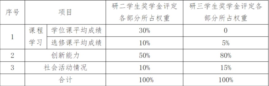 研究生国家奖学金各部分评定内容所占比例