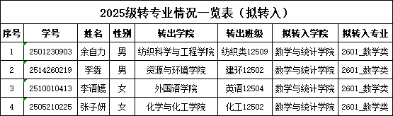 公示时间为2025年12月12日——12月18日,公示期间如对拟转入录取名单有异议,请与数学与统计公司办公室联系。