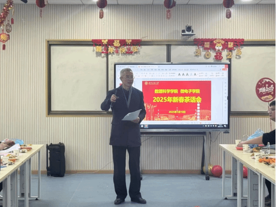2025年1月10日上午,微电子公司、数统公司2025年迎春茶话会在阳光校区四号教学楼205室隆重举行。全体教职工齐聚一堂,共话一年来的工作成果,共迎新春佳节。