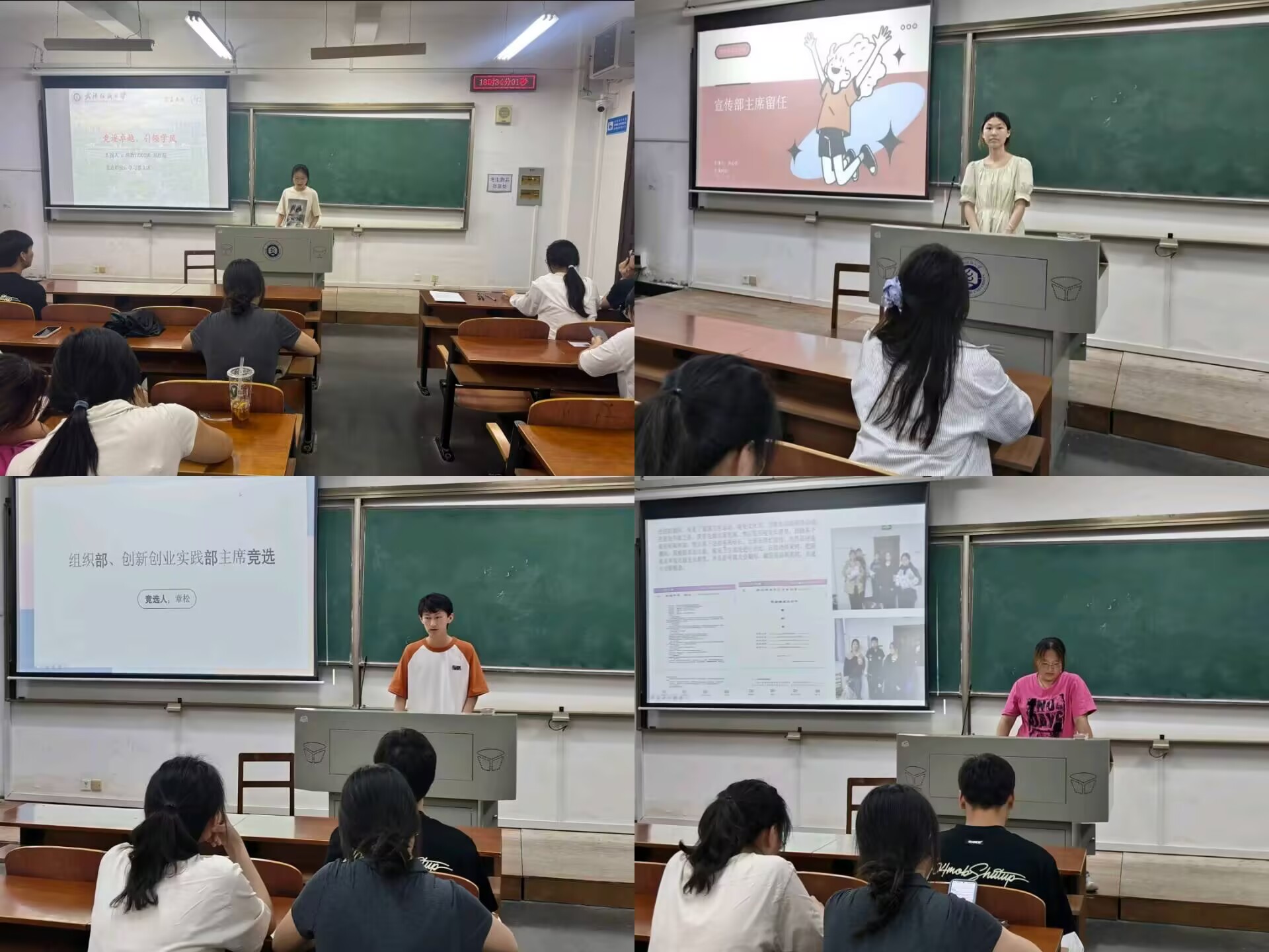 竞选时,曾琦老师向我们大致讲解了主席的一些职责,随后便开始了各个员工答辩展示,在每位竞选的员工讲明了自己的竞争优势后,曾老师以及主席团的成员则会对他们针对性的提问。其中,应数12302班刘欣荷竞选学习部主席;应数12301班竞选宣传部主席;应数12302班章松竞选组织部、创新创业实践部主席;应数12302班黄丹丹竞选劳育、志协主席;信科12302班张雅琼竞选文体活动部主席;应数12301班夏韵竞选宣传部主席;应数12301班张子豪竞选体育部主席;应数12302班卫云倩竞选秘书部主席。