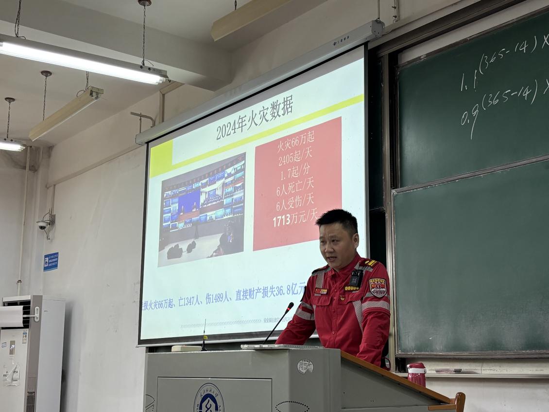 讲座中,张教官结合真实火灾案例与校园实际,通过现场教学,围绕火灾危害、火灾预防、火灾救助、火灾逃生进行了详细讲解,增强了入校新生对消防安全的认识,提高了火灾防控与应急处置能力。