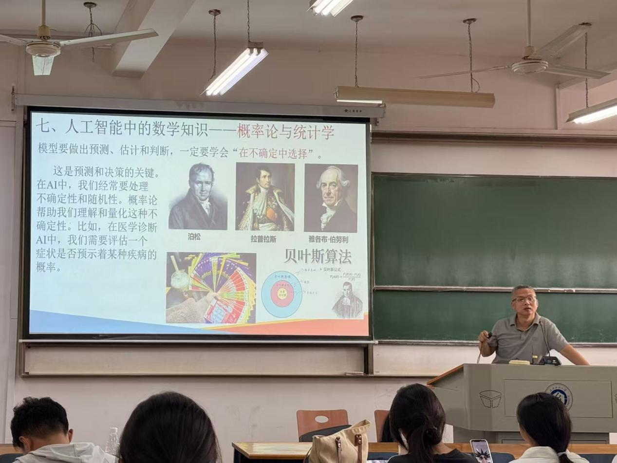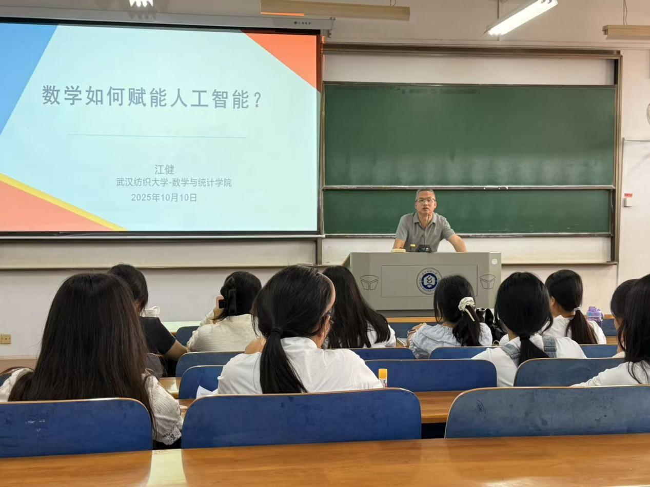 为深入解析数学与人工智能的内在关联,助力员工们洞悉AI技术底层逻辑,英国上市公司官网365于2025年10月10日在三栋教学楼举办了“数学赋能人工智能”主题讲座。本次讲座由江健老师担任主讲人,2025级新生积极参加,讲座圆满完成。