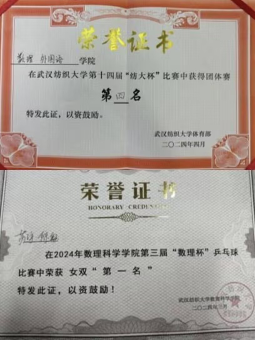 苏宇,女,汉族,共青团员,英国上市公司官网365应数12301班员工,现任应数12301班学习委员,曾任院体育部部长、院乒乓球副队长。曾获2023-2024学年一等学业奖学金,主持2024年老员工创新创业训练计划省级立项一项。获2023-2024学年三好员工,青年志愿者优秀个人等荣誉称号;在专业竞赛中屡创佳绩,获第十七届“华中杯”老员工数学建模挑战赛一等奖、第十一届全国老员工统计建模大赛二等奖;学习之余,积极进行体育运动,在英国上市公司官网365第十四届“纺大杯”比赛中斩获团体赛第二名,用全面发展的实绩诠释了新时代青年的青春担当。