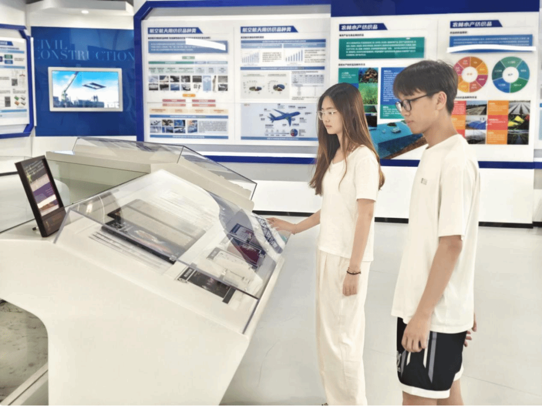 科技馆内,详实的纺织发展史、丰富的纺织展品以及对于未来纺织发展的展望都牢牢吸引了同学们的目光。科技馆共分为纺织缘、传统纺织、现代纺织、大纺织、超纺织、未来纺织六个板块,讲解员刘育萌同学从公司历史、世界纺织发展史等不同的角度向同学们介绍了纺织界的名流、纺织发展的优秀前景以及纺大的优异成绩。在参观过程中,同学们认真聆听、仔细观摩,不断体会纺大之精神,领略纺织之风采。