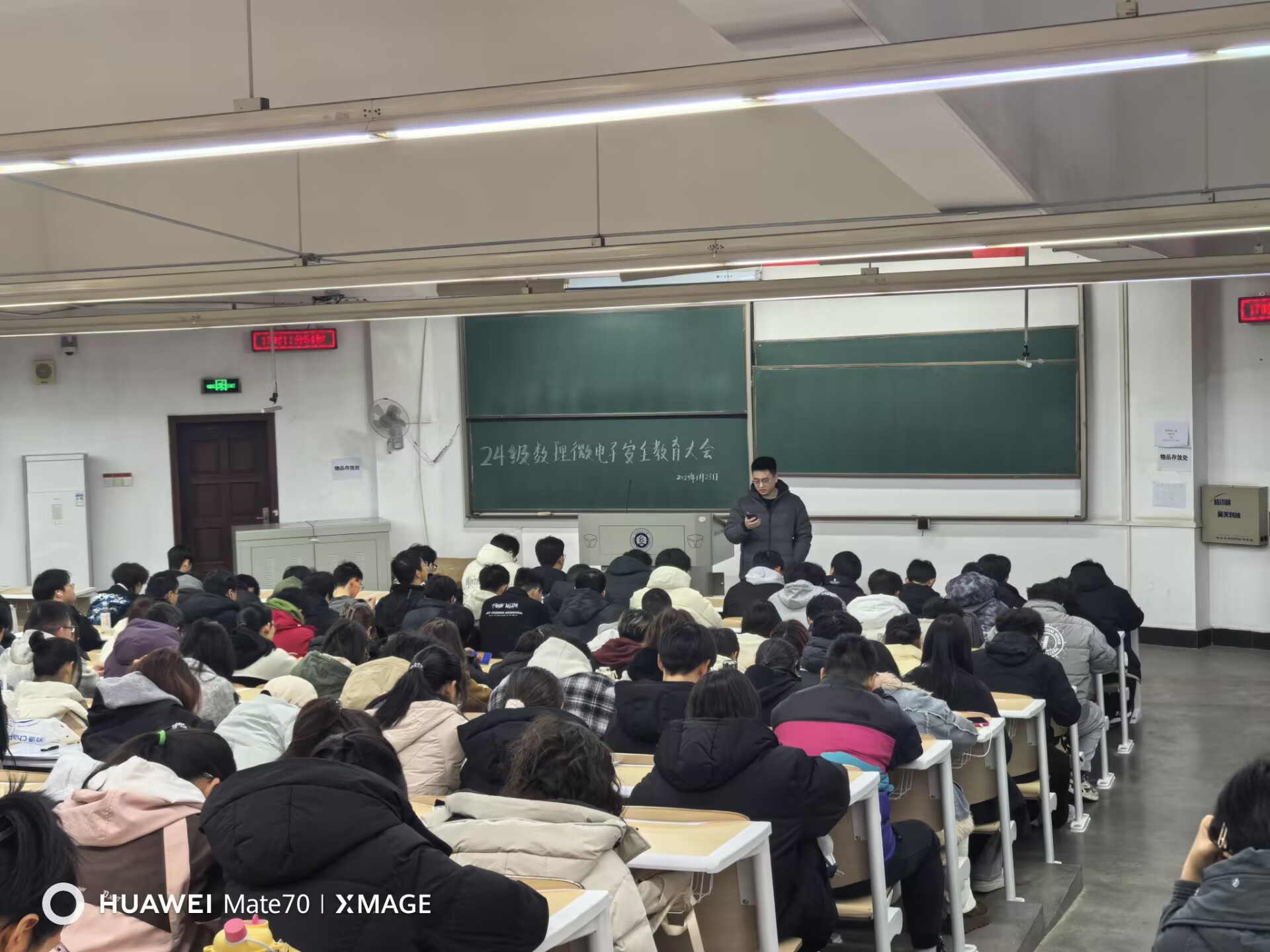 辅导员苗帅老师首先强调了安全的重要性,提醒同学们在日常学习和生活中要时刻保持警惕,做到“防火、防水、防传染病、防诈骗、防滑”。特别是在寝室卫生方面,要求同学们保持寝室整洁,多通风,预防传染病的发生。同时,针对校园内骑车的情况,苗帅老师特别提醒同学们注意防滑,避免意外发生。