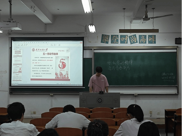 随后,团支书向同学们介绍了新中国十大劳模,宣讲他们的光辉事迹,并邀请同学们积极发表自己的看法和观点,以及在当今时代,作为新一代青年,应如何奋发有为、踊跃投身,为全面推进社会进步与发展贡献出自己的力量。
