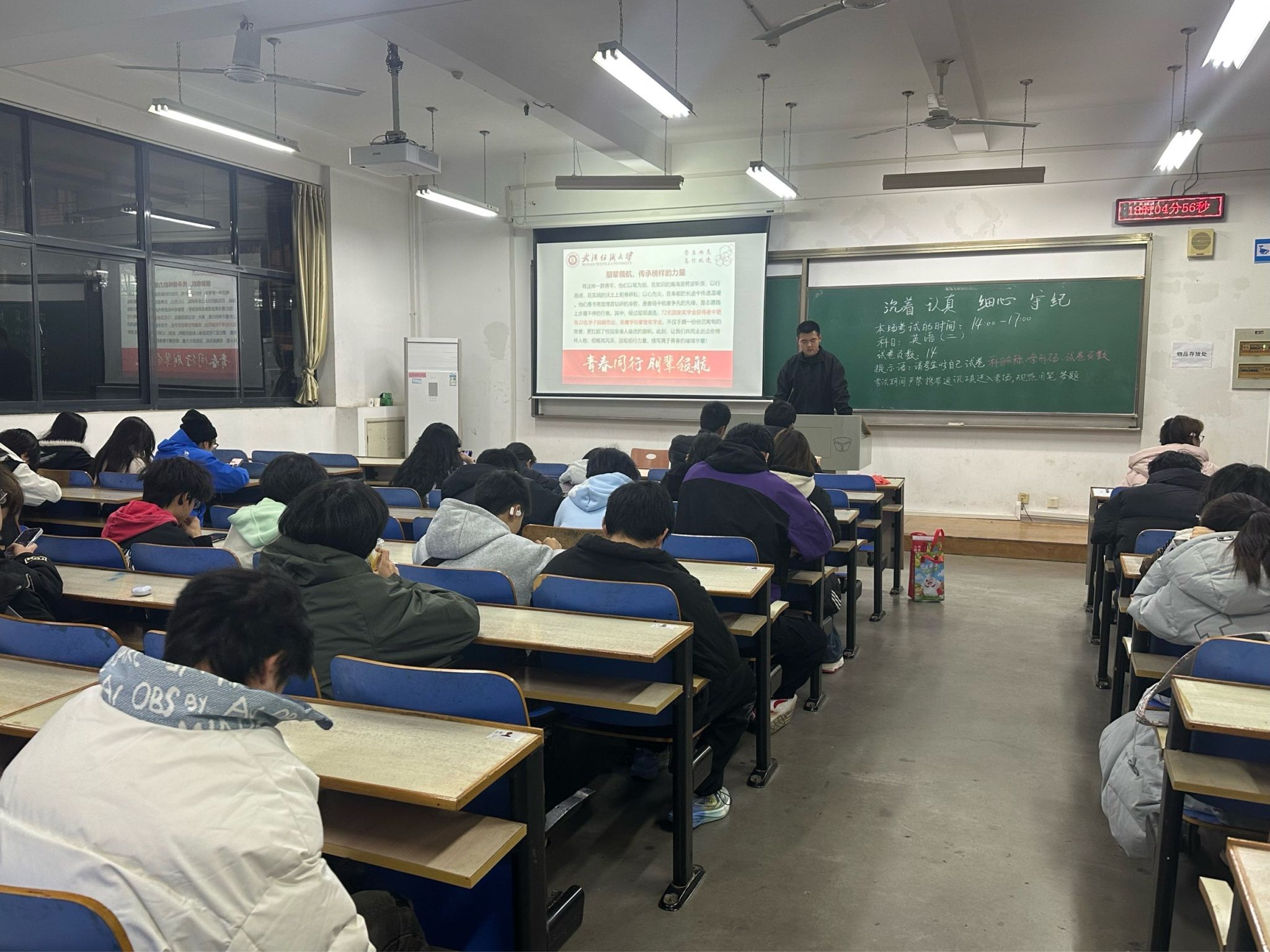 此外,黑板上“沉着、认真、细心、守纪”的考试提醒,也让班会兼具学风建设与考风教育的意义,督促同学们以端正态度迎接学业考核。班会过程中,同学们认真聆听、积极思考,纷纷表示将以榜样为标杆,借助公司搭建的成长平台,在奋斗中书写青春篇章。
