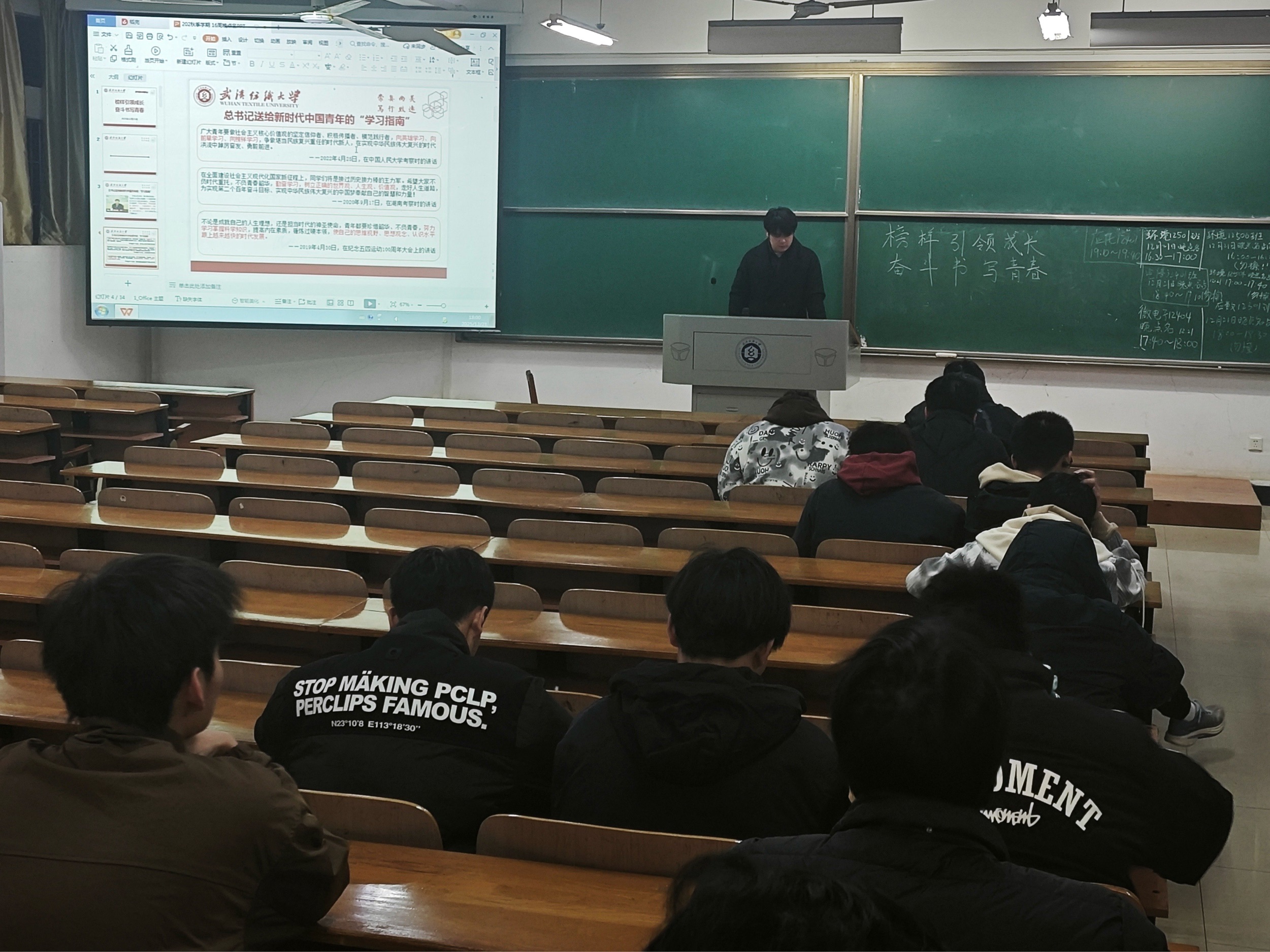 班会围绕理论学习、榜样激励、专项基金解读等内容展开,为同学们的学业与成长注入精神动力。班会现场,各班班长首先带领同学们学习总书记送给新时代中国青年的“学习指南”,从思想层面引导青年学子树立正确的价值观与学习观。