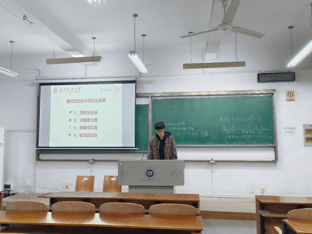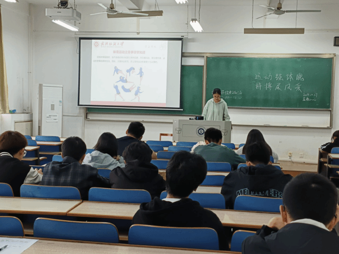 最后,各班班长强调在进行体育运动的同时还要注意规避风险,保护好自己,要注意一些体育运动注意事项。向各位同学介绍了体育运动伤害发生的因素,帮助大家更好的防范。分别从检查自己的身体情况、检查运动场地和器材,运动负荷要适当,要适当补充能量等方面进行宣讲,希望各位同学都能够拥有更好的运动体验,能够在运动中保护好自己。