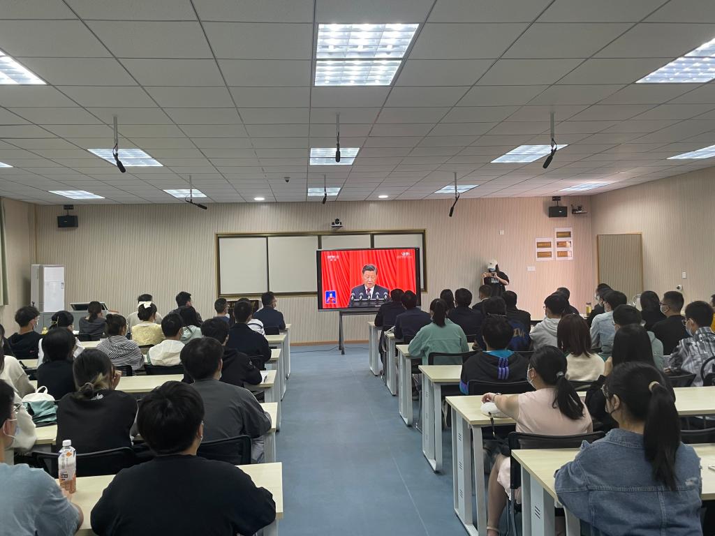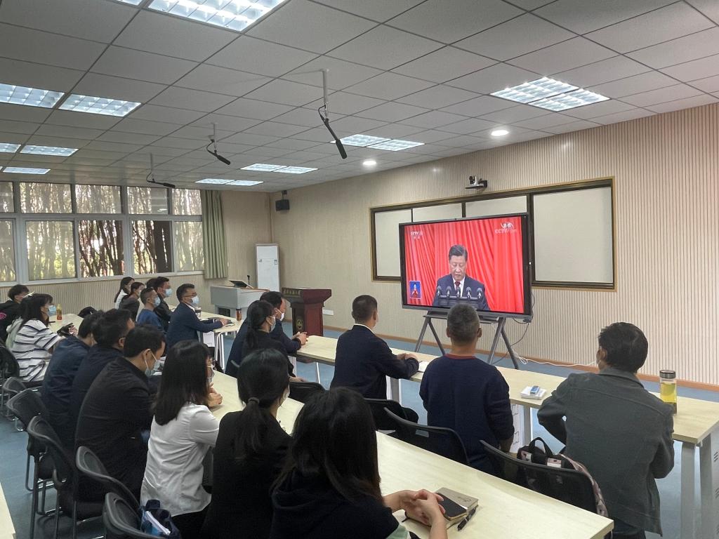 崇文楼203,百余名员工集中观看中国共产党第二十次全国代表大会