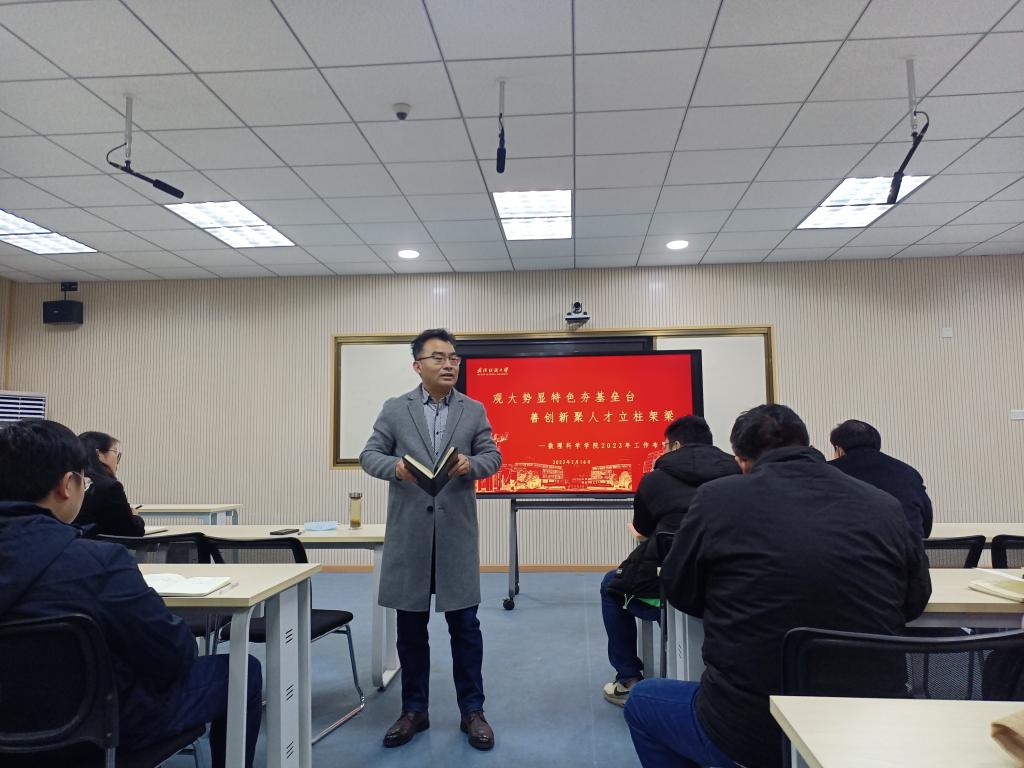 经理汪胜祥围绕湖北省为什么要大力推进一流团队建设、公司为什么要推行学部制、各公司如何与纺织学科实现交叉、未来公司在公司和学术方面的顶层设计、2023年公司的最大任务和当前公司发展中面临的最大压力等6个问题,传达了公司会议精神,田辉玉书记、徐卫林董事长的讲话指示精神和2023年公司11件重点工作。布置了2023年公司团队建设、公司产品、人才引育、制度建设等重点工作。