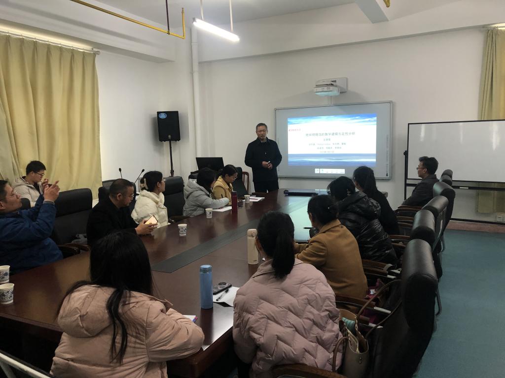 王锦荣教授报告题目地球物理流的数学建模与定性分析。首先,介绍了球坐标意义下南极绕极流问题数学模型推导,运用经典的非线性泛函分析工具获得该模型多种边值条件下解的存在性结果,进而推进至北极环流的相关问题研究。其次,介绍了涡度函数方法,赤道附近常数涡度海洋流的运动规律,边缘波问题精确解表示和稳定性分析。最后,介绍了大气Ekman经典方程精确解的计算方法,其精确解的若干新表示及其局部和全局分析,带湍流项的Ekman模型的周期解和稳定性,发展了洋流问题的涡度方法,探索了常数涡度大气Ekman流的运动规律。会后王锦荣教授对老师和同学们的提问做了细致的解答。