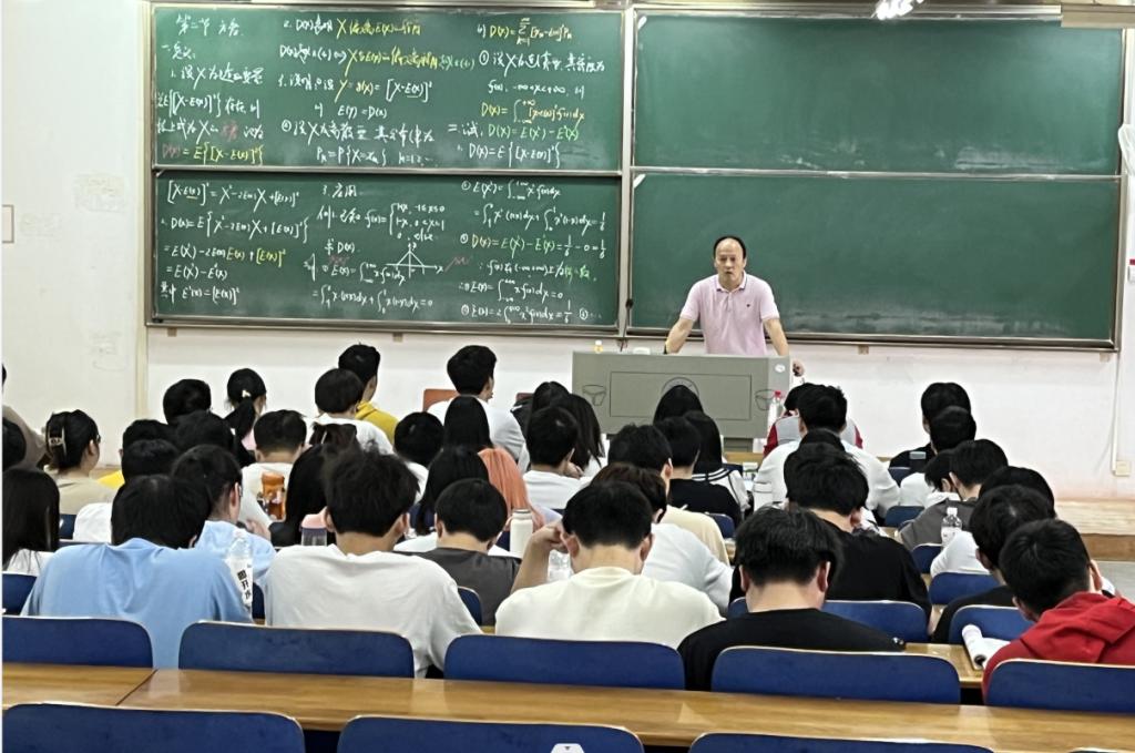 大学数学中心毛耀老师以《随机变量的方差》一课向各位观摩的老师和上课的同学展示了如何将课程思政融入教学。他首先回顾了上次课学习的随机变量的数学期望,谈到随机变量在日常生活中的应用,例如股票中的收益、努力学习后的考研目的,通过列举公司2023年的员工榜样人物的典型案例,激励同学们发奋进取,实现自己的最大希望,提高自身的学习水平,为祖国的繁荣昌盛添砖加瓦。