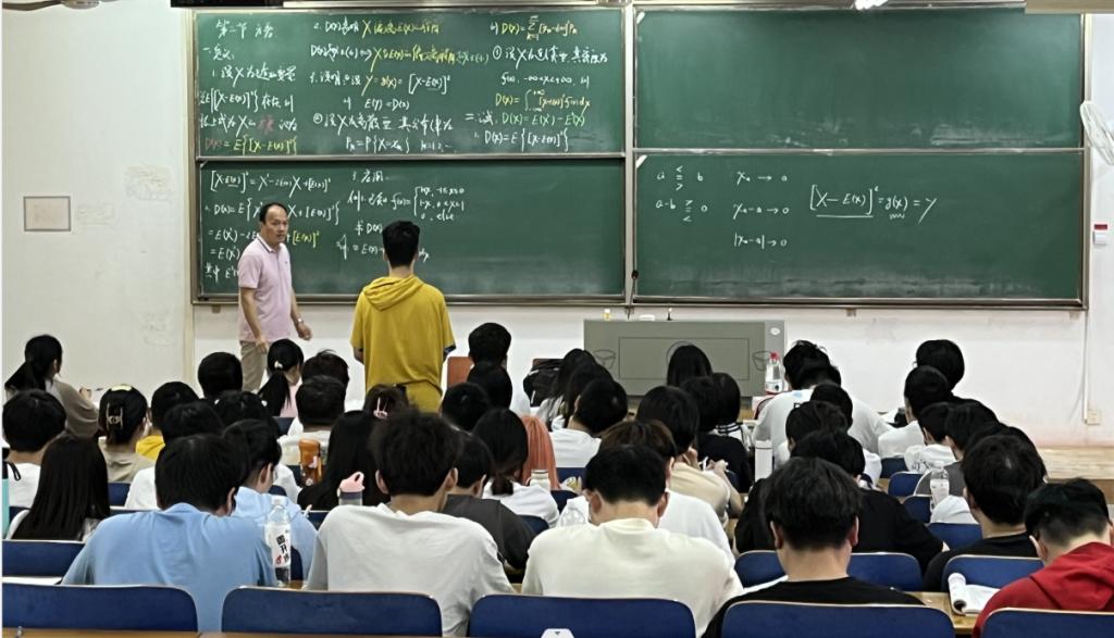 然后,毛老师再从随机变量函数的期望引入方差的概念。通过和员工灵活互动、让员工回答问题讲解方差在离散型和连续型随机变量中的定义、方差的计算公式和方差的性质,帮助同学们建立的方差的系列知识。毛老师双向互动的教学手段提升课堂员工的积极性与参与度,使员工们受益匪浅。