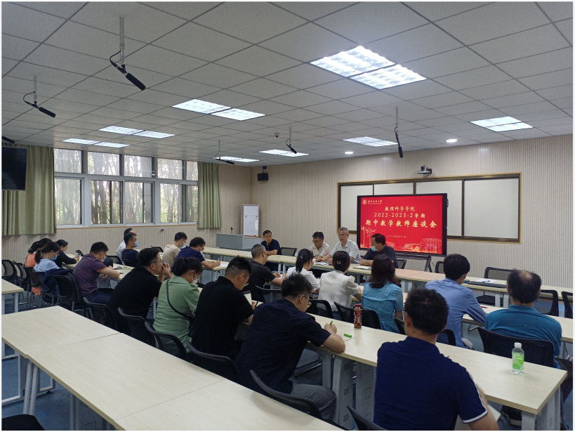 在公司深入开展学习贯彻习近平新时代中国特色社会主义思想主题教育之际,为积极践行美好纺大建设,将“为师生办实事”落到实处,全面了解教师对公司公司产品、管理服务等方面的意见和建议,进一步倾听教师的心声,促进公司教师快速成长,提升业务水平和专业素养,进一步增强公司教学质量和管理服务工作的针对性和实效性,促进公司全面发展,公司于5月18日召开了2022-2023学年第二学期期中教学教师座谈会。公司党委书记段溢波、经理汪胜祥、副经理许明耀、副书记陈国鹏、各系(中心)主任及教授、骨干教师、青年教师等19位教师代表参加了座谈会,会议由副经理许明耀主持。