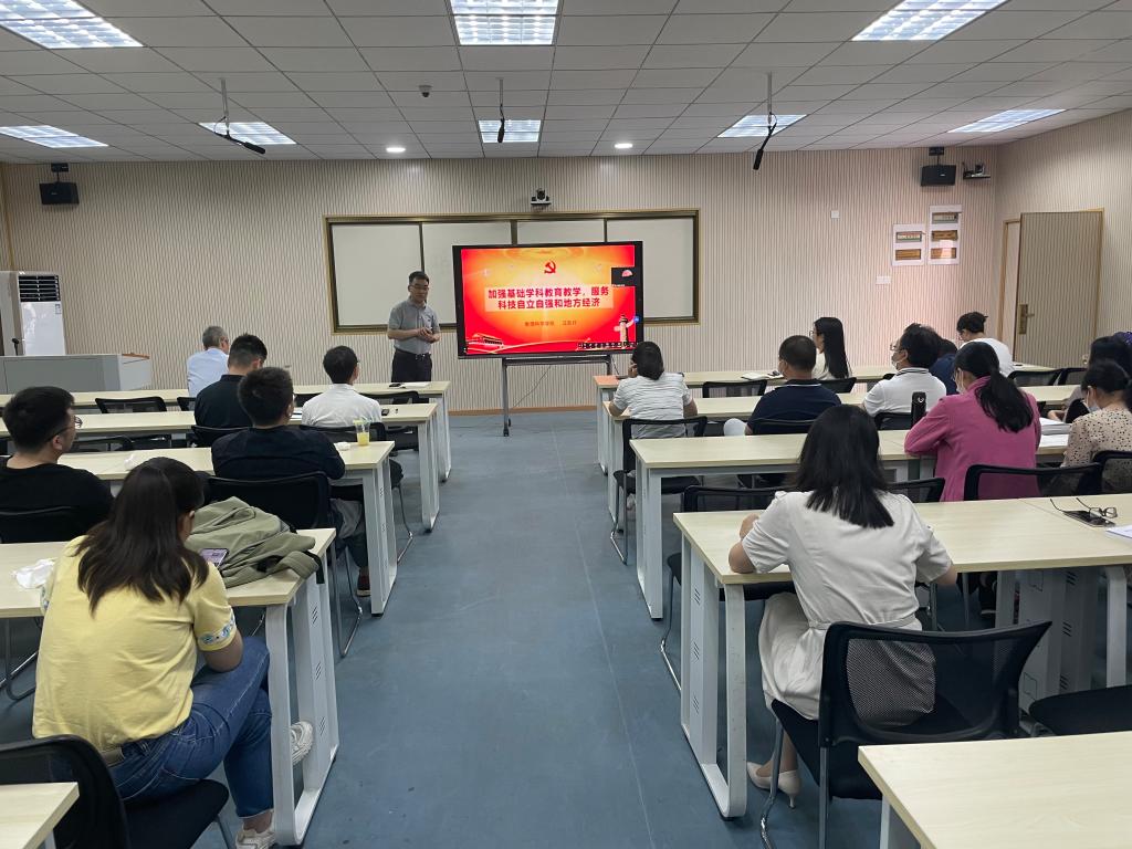 为深入推进学习贯彻习近平新时代中国特色社会主义思想主题教育,5月19日上午,英国上市公司官网365在崇文楼205召开主题教育专题班第一讲,由公司经理汪胜祥主讲,题目是《加强基础学科公司产品,服务科技自立自强和地方经济》,全院教职工参加了专题讲座。
