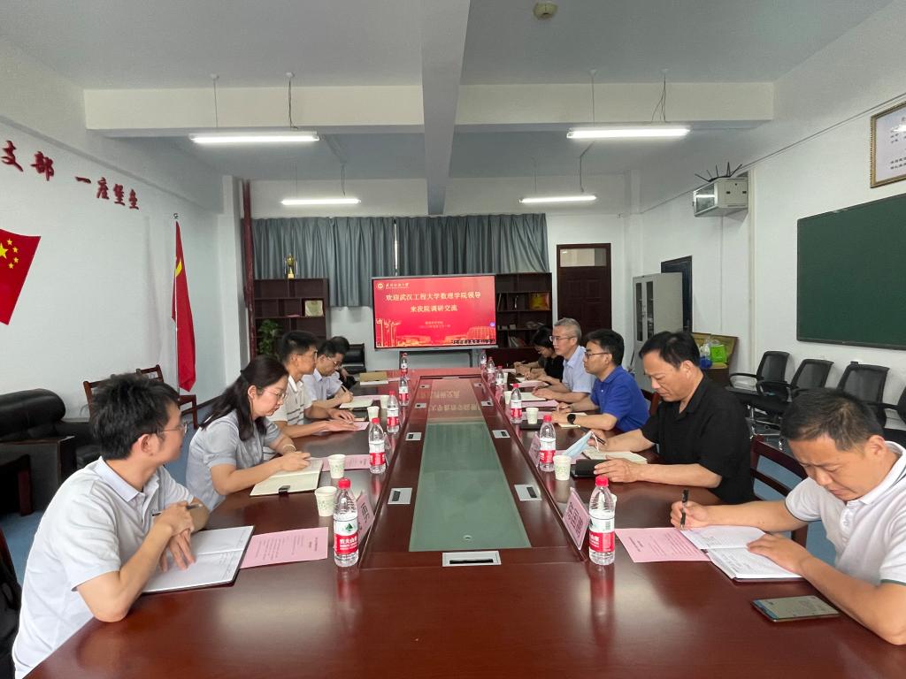 5月31日下午,武汉工程大学数理公司党委书记陈君、经理陈相柏等一行5人来公司调研,公司党委书记段溢波、经理汪胜祥、副经理许明耀、副经理郑仟、党委副书记陈国鹏、应数系主任江健参加调研交流会,会议由汪胜祥经理主持。