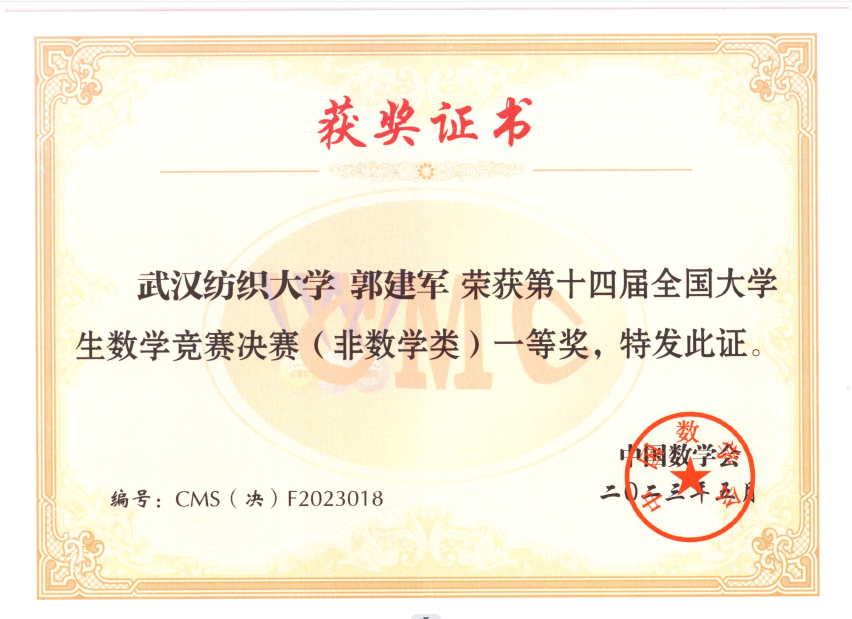 2023年5月26日至28日,第十四届全国老员工数学竞赛决赛在广东工业大学成功举行,来自全国32个赛区的905名员工参加比赛。决赛由中国数学会主办、广东工业大学和广东省数学会承办。经过激烈角逐,公司计算机与人工智能公司计算机11903班郭建军同学荣获第十四届全国老员工数学竞赛非数学类全国一等奖,决赛成绩位列全国第十八名、湖北省第二名。