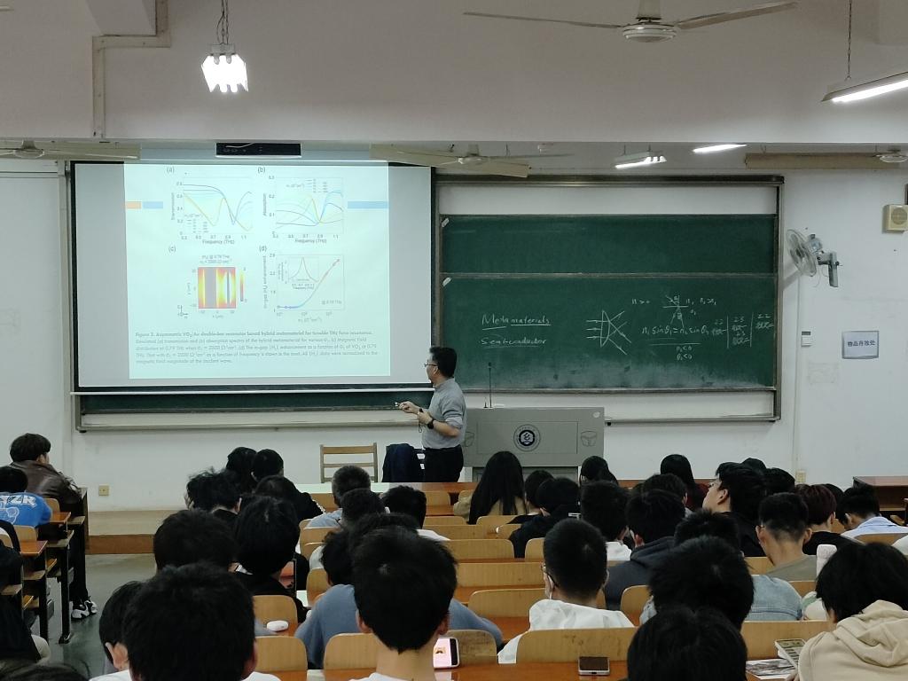 汪胜祥从该项研究的背景、专业知识、其未来发展前景三个方面展开分享。首先向同学们介绍了什么是超构材料、超构材料的特性,让同学们对超构材料有了基本认识。同时结合同学们现有的知识对超构材料未来的发展前景,其在多领域的实际应用进行了详细的阐述,让同学们对该专业知识有了更加深刻的理解。