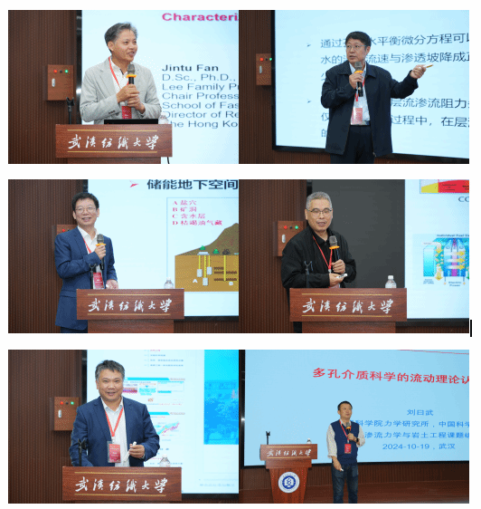 19日上午,大会主题报告,香港理工大学未来服装纺织科技研究中心主任、理大运动科技研究院副经理范金土教授作了题为“纺织品水分管理:表征、机制和产品开发”的学术报告。原大连理工大学党委副书记、副董事长邵龙潭教授作了以“基于土水之间相互作用的渗流方程及土工试验和仪器”为主题的学术报告。中国科公司武汉岩土力学研究所科研计划处处长、国家能源地下储气库研发中心副主任刘建军研究员作了题为“深地储能机遇与挑战 ”的研究报告。华中科技大学郭照立教授作了题为“两相渗流的奇性相场格子Boltzmann方法”的学术报告。中国地质大学(武汉)新能源公司经理、构造与油气资源教育部重点实验室主任和国家地热能中心委员蒋恕教授作了题为“海上高温致密热储渗流传热及开发方案”的学术报告。中国力学学会渗流力学专业组组长、科普委员会副主任委员、中国科公司力学研究所刘曰武研究员分享了以“多孔介质科学的流动理论认识及应用”为主题的学术报告。