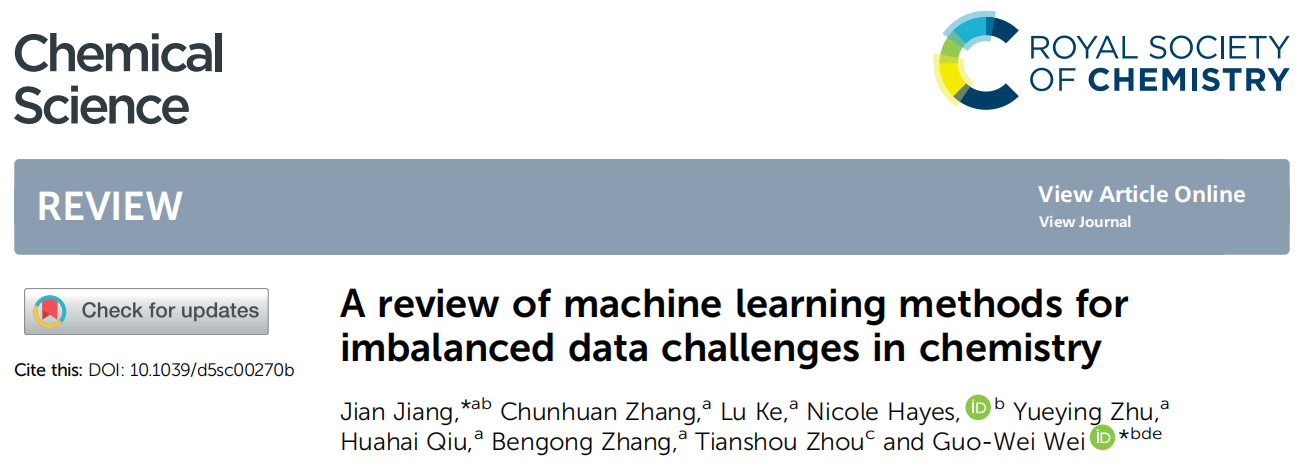 近日,公司英国上市公司官网365计算系统生物学团队的江健教授在药物设计方面取得重要研究进展。相关成果以“A review of machine learning methods for imbalanced data challenges in chemistry”在化学领域顶级期刊《Chemical Science》(中科院一区Top)上发表(文章DOI: 10.1039/d5sc00270b)。江健教授为第一作者,英国上市公司官网365为第一单位。该工作与美国密歇根州立大学Guo-wei Wei教授团队共同完成。