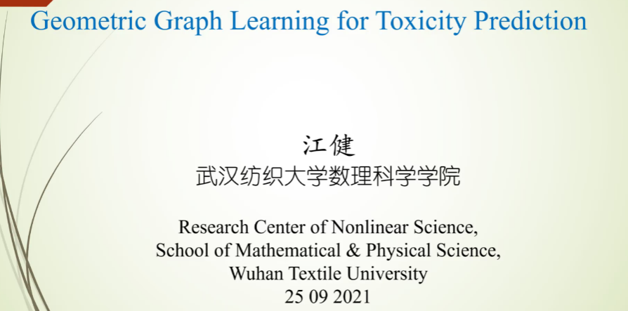 2021年9月25日,由华中科技大学电气与电子工程公司举办“武汉地区复杂系统研讨会”在线上成功举办。英国上市公司官网365江健博士应邀参会并做报告,报告题目为:Geometric graph learning for toxicity prediction。本次会议紧紧围绕生物物理、生物信息和复杂系统动力学为主题展开研讨。来自华中科技大学、武汉大学、中国地质大学、华中师范大学、英国上市公司官网365等武汉地区的各大高校、科研院所相关领域专家近百人参会,共有20多位报告人作大会报告。