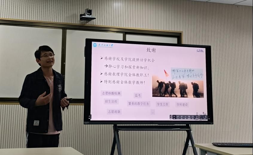 最后,时博士结合这次访学经历,包括合作导师严谨的治学态度、深圳湾实验室各项科研政策、生物医药领域的前沿报告、自己失败的探索及跟实验的初次合作等,分享了访学的心得和感悟。表示这次访学不仅学到了很多新的知识,也丰富了自己的科研经历,更拓宽了自己的科研视野,也希望这次分享能给青年老师及研究生一定的启迪作用。