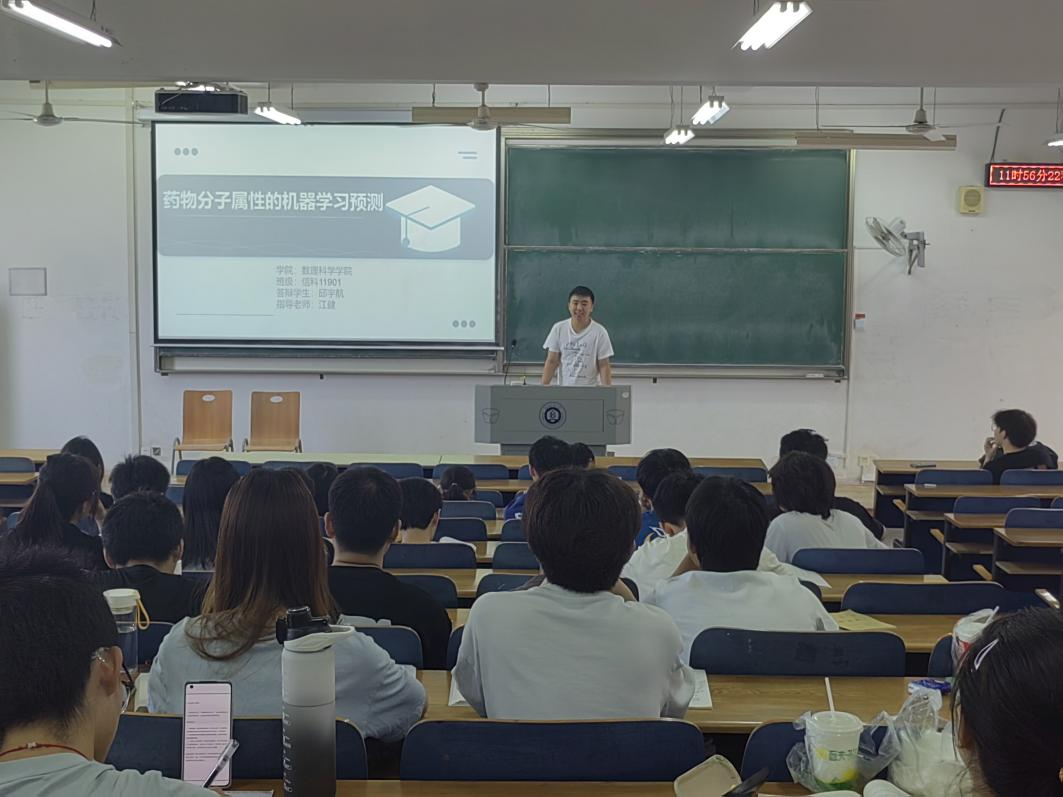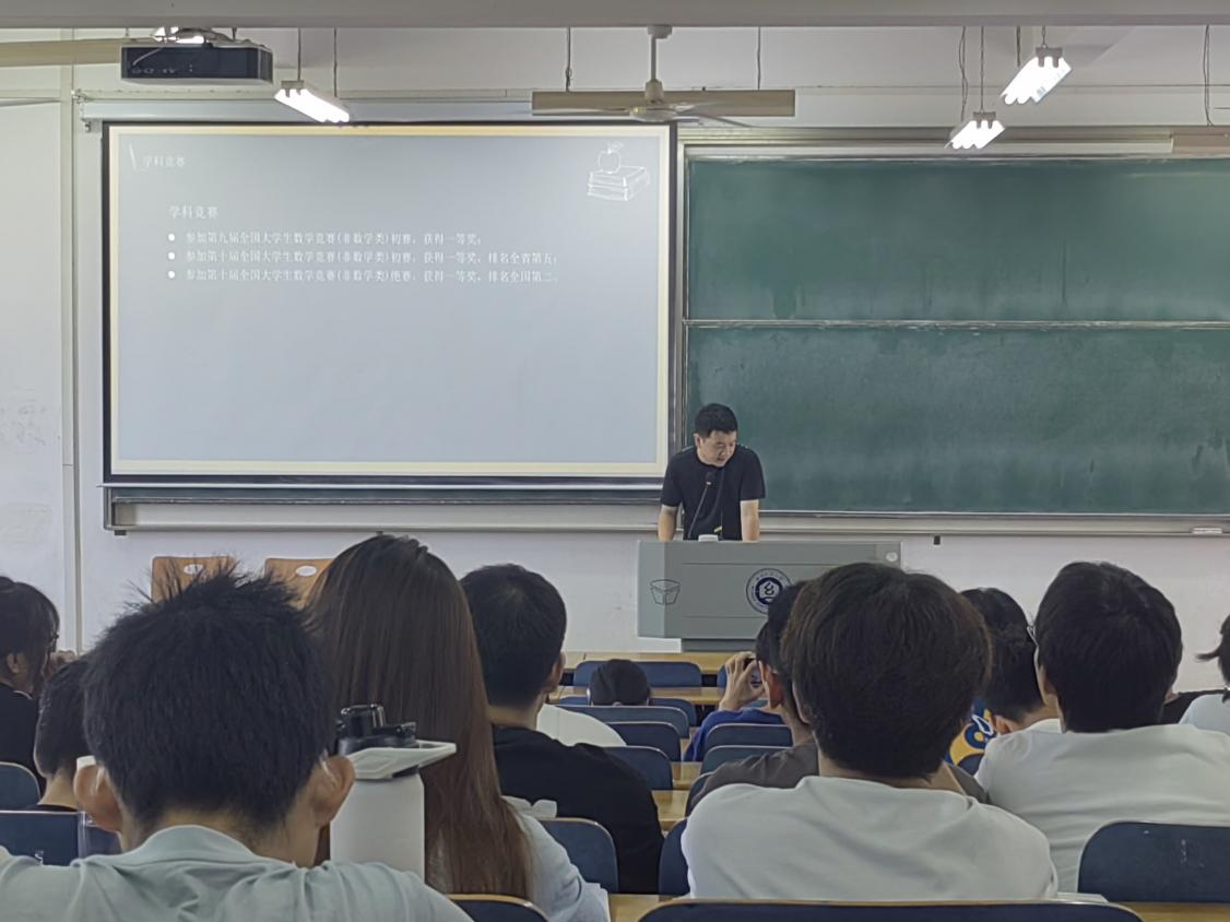 毛耀老师介绍数学竞赛的重要意义并鼓励同学们积极参加。吴仔航、邱宇航学长讲解分享优秀毕业设计《英国上市公司官网365二手市场小程序的设计与实现》、《药物机械分子的机器学习预测》。他们都提到,只有多参加学术竞赛活动来拓宽自己的视野,才能更好地学习数学、提高能力。罗淑杰学姐真诚分享考研心得和体会,以及如何充分备战考研。周钰学长向同学们分享他在纺大参与数学竞赛的历程以及学习数学的学习方法和数学书籍推荐。周钰学长强调:学习数学最重要的是学习方法,其一是学会“追根溯源”,即深入了解数学知识背后的原理和推导过程,不仅仅是记住公式、方法和结论,而是要理解其由来和推演过程,以此建立数学知识的系统性和连贯性;其二是不要追求只“看懂”书上的过程,而是要注重理解和掌握数学知识的思维方法和本质,而不是仅仅记住一些例子和步骤;其三是可适当掌握“高屋建瓴”的思想,也就是应该从整体出发,理解知识点的背景和原理,掌握不同知识点之间的逻辑关系,做到全面深入地掌握数学知识,从而建立起完整的数学框架。