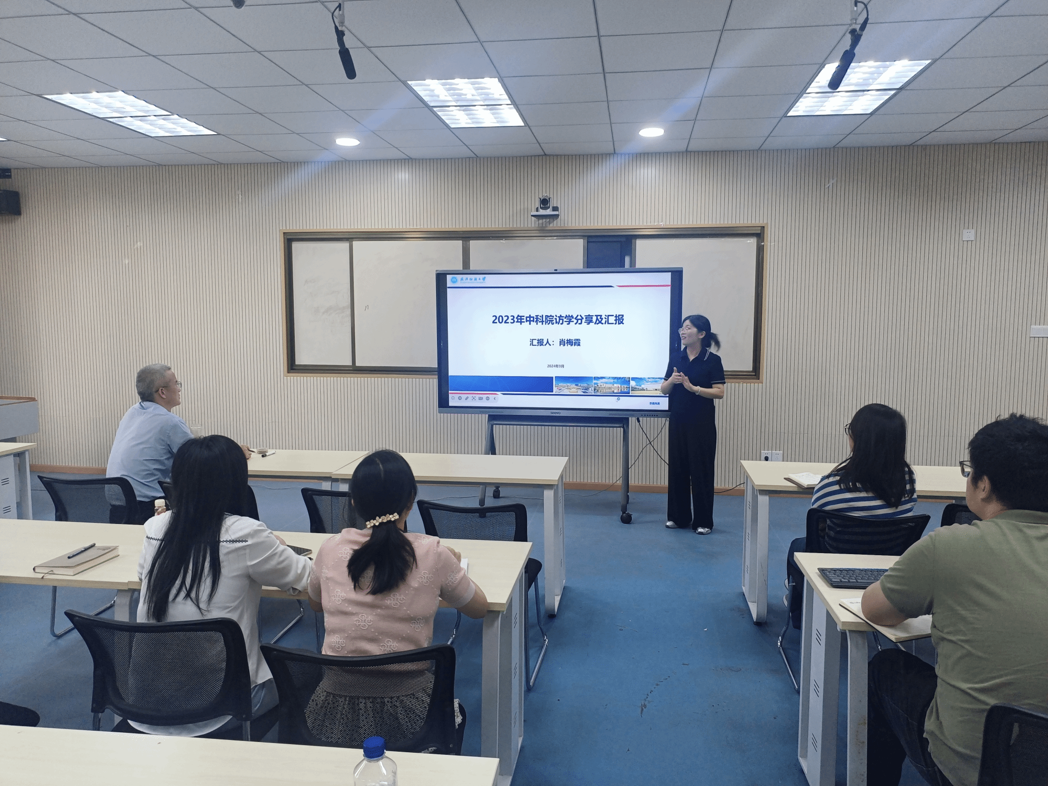肖梅霞老师分享了在中国科公司数学与系统科学研究院访问以及合作导师基本情况,同时她结合访学心路历程,从卓越的学术环境、浓厚的学术氛围、丰富的学习资源等方面跟大家进行了详细分享。她鼓励青年教师积极把握机遇,要不断学习提升,通过交流访问拓宽视野。