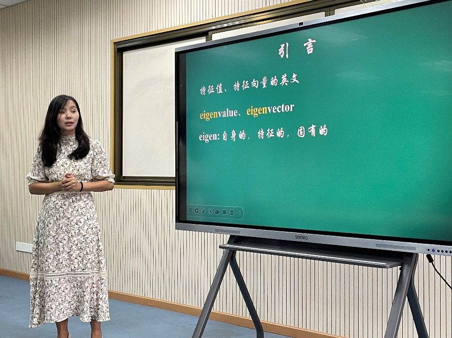 陈老师讲授的内容是线性代数的《特征值与特征向量》,她运用图文并茂、辅助动画演示的多媒体课件,从课前复习、引言到本节内容,环环相克,还介绍了本节内容中涉及到相关数学家的人物简介。陈老师上课过程中课堂气氛活跃,授课极富感染力,充分调动了员工的主动性,激发了员工的学习兴趣,教学效果很好。