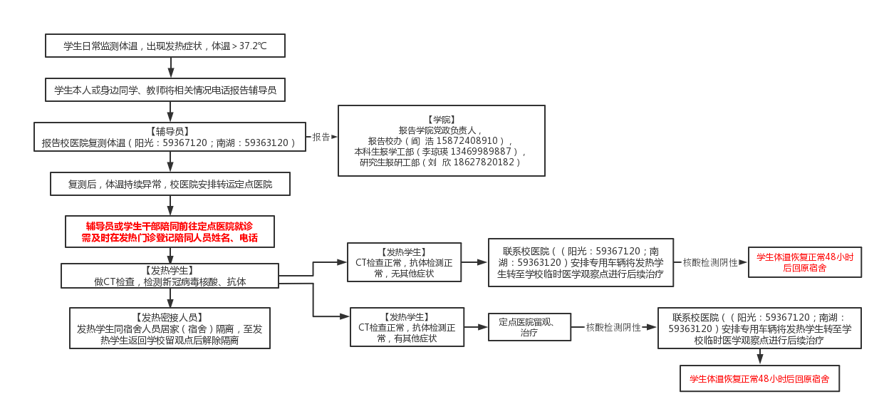 二、发热处置流程。近段时间,气温仍然较低,春季也是呼吸道疾病高发的季节,尤其疫情防控常态化,感冒发烧更不能掉以轻心,若有发热症状按下流程处置: